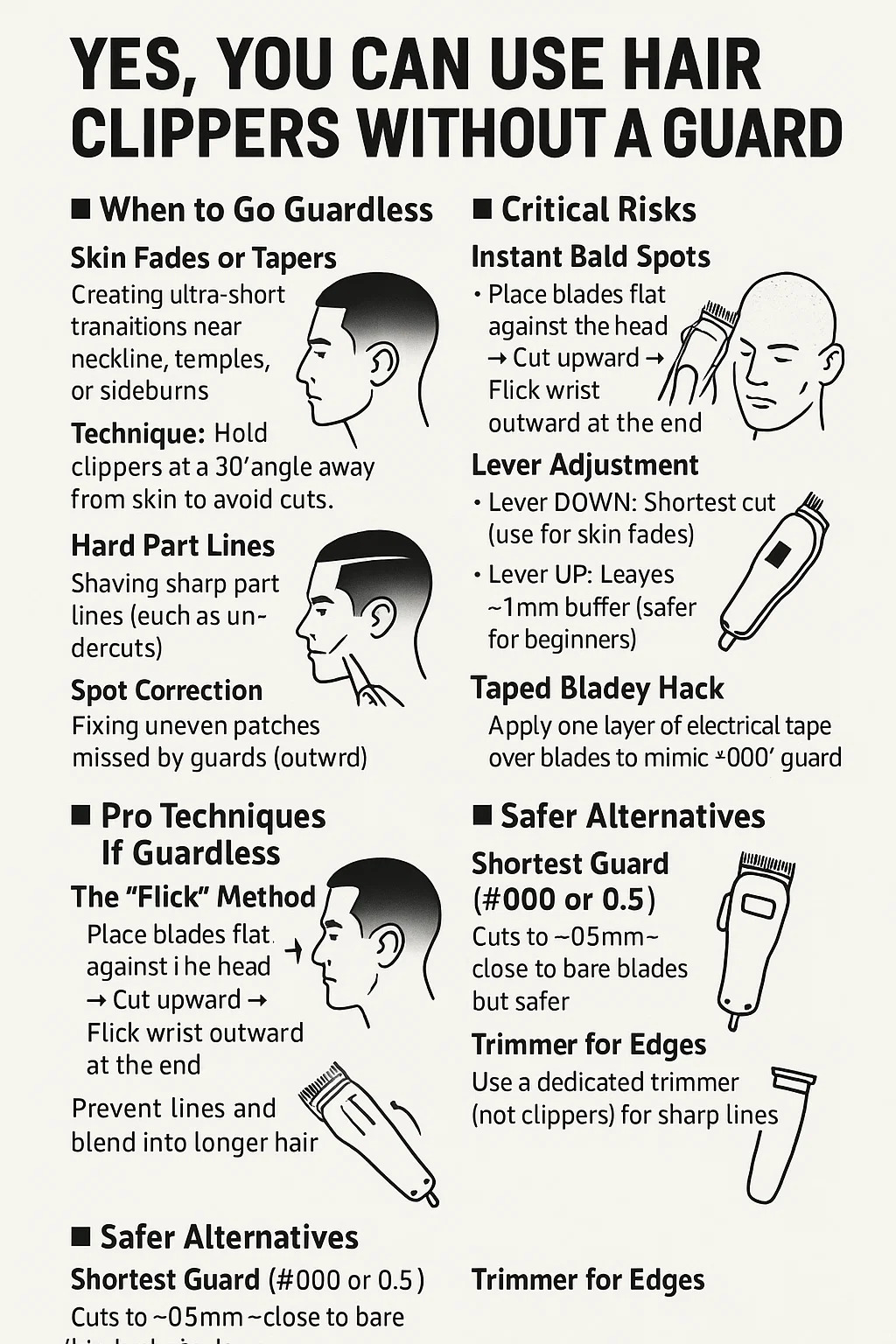 Evet, kullanabilirsin saç kesme makineleri koruma olmadan, ancak dikkat ve özel teknikler gerektirir. İşte bilmeniz gerekenler:
