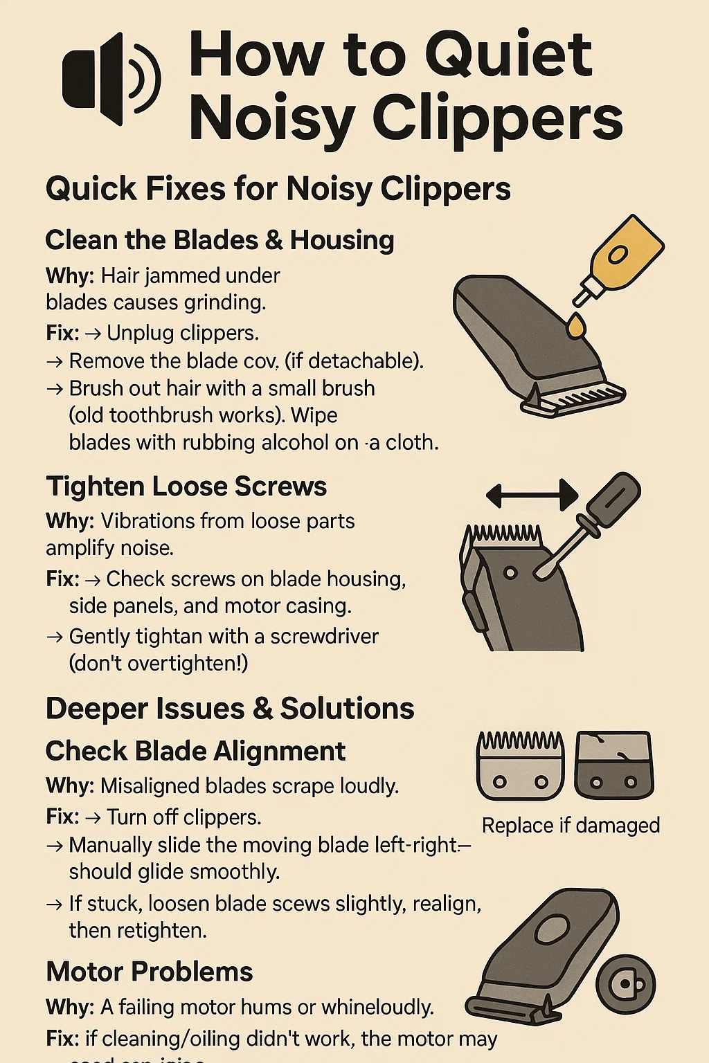 Yüksek sesle saç kesme makineleri can sıkıcı olabilir ve bir soruna işaret edebilir. Yaygın düzeltmeleri kullanarak bunları nasıl susturacağınız aşağıda açıklanmıştır: