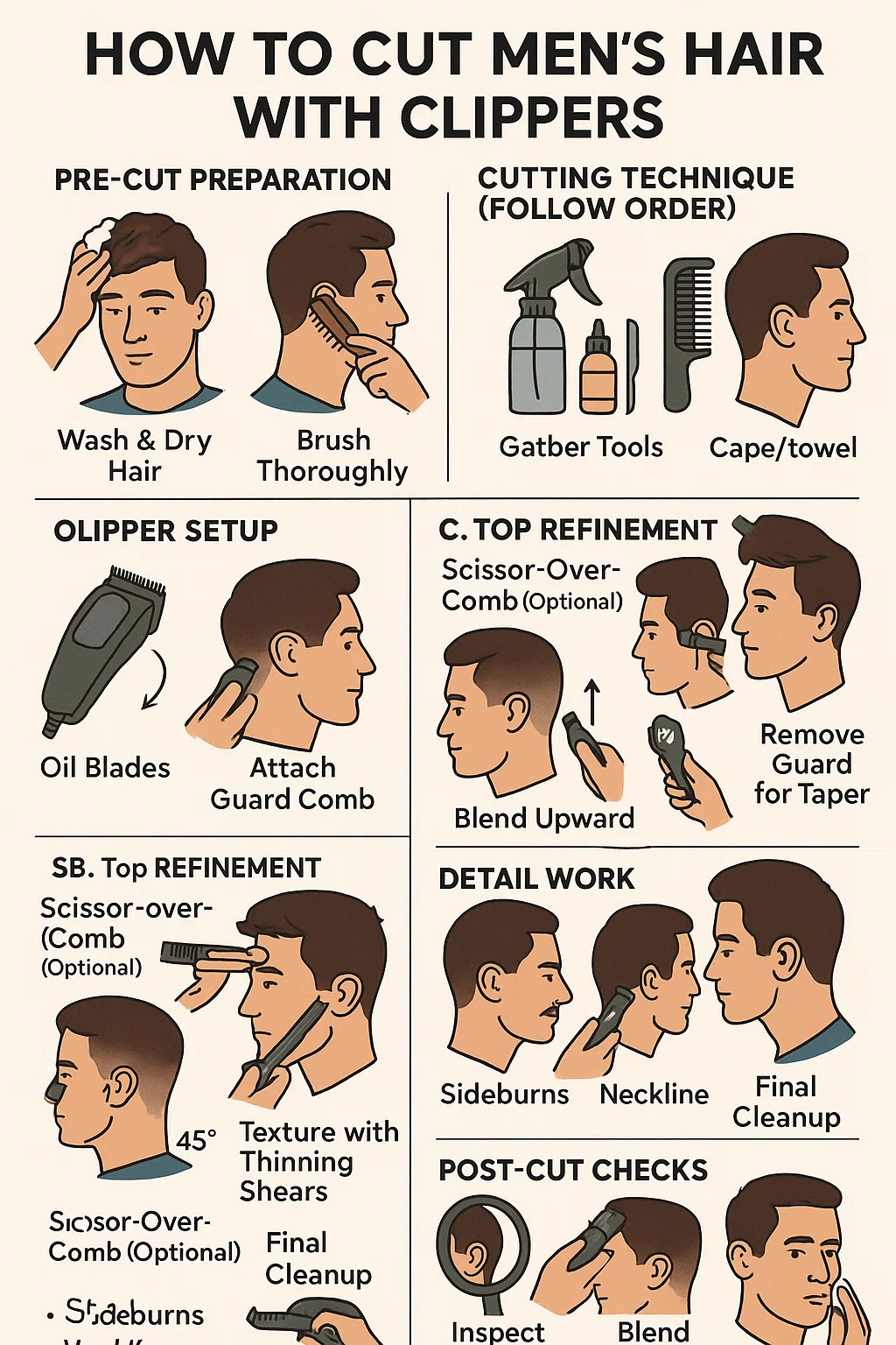 İşte erkeklerin saçını kesmeye yönelik adım adım kılavuz saç kesme makineleri :